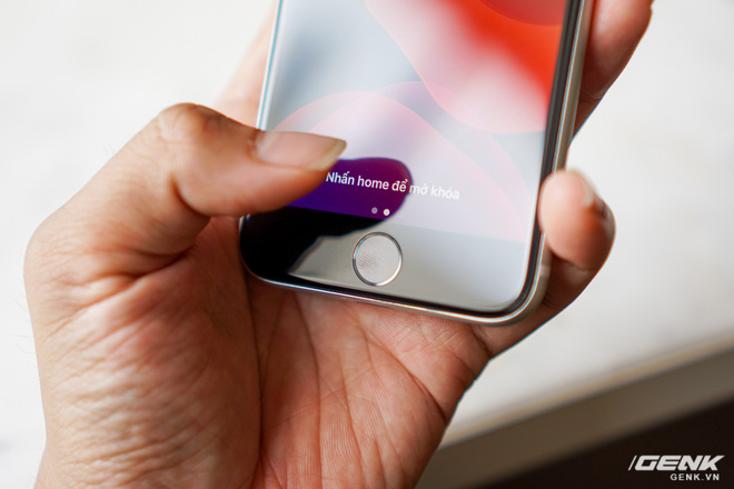 Khởi động máy xong, việc đầu tiên tôi làm là vuốt màn hình lên để mở khóa. Nhưng tôi đã nhầm lần nữa, chỉ vì thói quen thao tác cử chỉ vuốt mà tôi quên mất sự hiện diện của cái phím Home kia. Rõ ràng ngày trước, chúng ta ai cũng đã từng dùng qua phím này, dù là iOS hay Android, nhưng khi mọi thứ được giản lược bớt để nhường đường cho viền màn hình mỏng, ta đã nhanh chóng quên đi sự có mặt của nó.